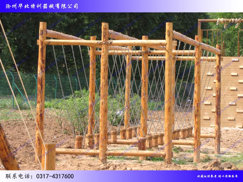 高空拓展器械:A07LLM1。 地面拓展器材:軟梯、獨(dú)木橋、爬網(wǎng)、吊樁、阻隔墻等。 水上拓展設(shè)施:水上等距橋、穿孔橋、滑索橋、梅花橋、秋千橋、滾桶橋等。 |